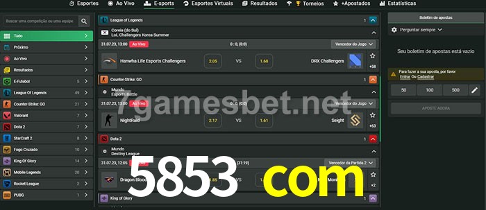O 5853 com oferece uma grande seleção de opções de apostas em e-sports com probabilidades competitivas